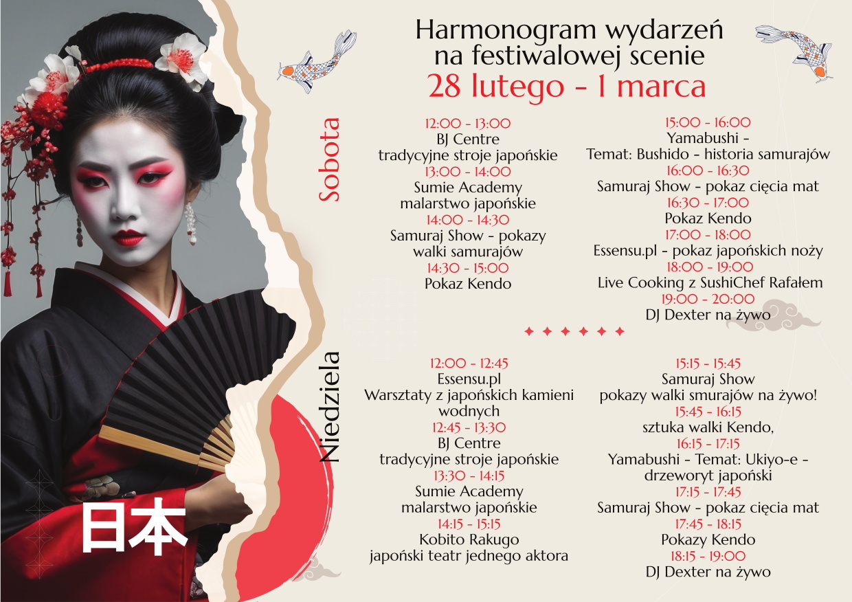 Nie przegap tej wyjątkowej okazji, aby zanurzyć się w fascynujący świat Japonii! Przygotuj się na dwa dni pełne wrażeń, smaków i inspiracji.